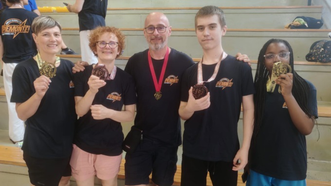 Cinque gli atleti in gara della società roasiana, inseriti nel Team Piemonte: 2 medaglie d’oro, primo posto assoluto in categoria per Francesca Tacca di Albano Vercellese, nella categoria Master cinture gialle e altrettanto primo posto per Marie Lysiane Choupa Tsigue, nella categoria Junior cinture gialle. Entrambe al loro solo secondo debutto, stanno dimostrando crescita e talento nella pratica di questa specialità. Bronzo per Diego Quaglia di San Germano Vercellese, nella categoria Junior cinture rosse, che dopo aver passato la semifinale in una pool di 9 atleti, ha guadagnato il terzo posto a distanza di pochissimi punti rispetto all’avversario arrivato secondo; ottimo risultato, considerato anche il livello degli avversari, che in questa categoria inizia ad essere davvero elevato. Uno splendido terzo posto ex aequo per Paola Rosati di Roasio, nella categoria Master cinture nere, che è riuscita a salire sul podio al suo primissimo debutto in gara, in una categoria molto difficile ed esperta. Infine, quinto posto per il tecnico Maurice Magoni, che anche lui nella categoria più esperta, Master cinture nere, si avvicina al podio dopo diversi anni di fermo dalle gare.