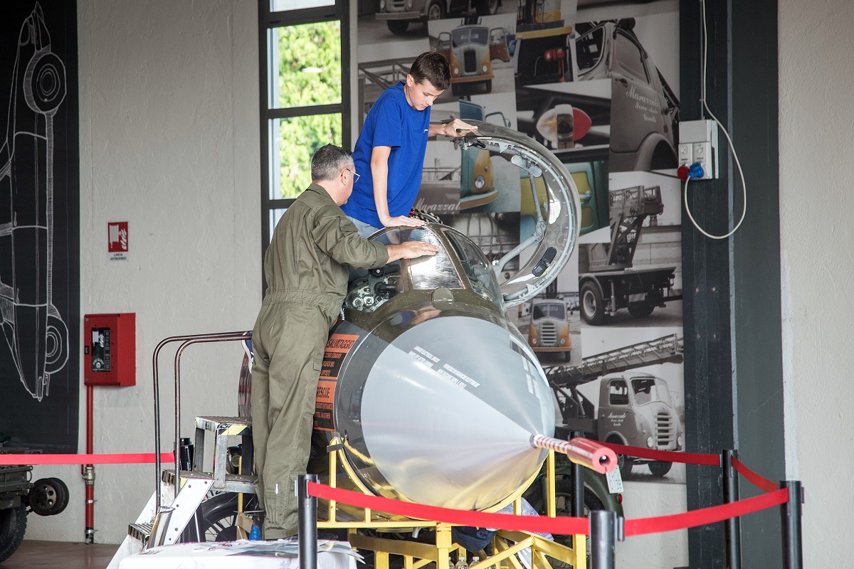 Il momento più solenne è arrivato, come d’abitudine, la mattina del sabato, quando nello showroom della sede, sullo sfondo della mostra tematica di mezzi di ogni tipo, ha avuto luogo l’abituale convegno. Moderati dallo storico e scrittore Simone Schiavi, si sono alternati il giornalista ed esperto Roberto Bruciamonti, il presidente dell’IMVCC (International Military Vehicles Collectors Club) Lorenzo Scarlata e il presidente della Commissione ASI Veicoli Militari Aurelio Sanmartino, che hanno ripercorso il percorso della nascita e sviluppo e soprattutto le molte curiosità dietro i mezzi leggeri più o meno celebri della produzione americana, italiana, tedesca, francese e britannica toccando anche gli esempi più significativi di quella sovietica e giapponese, e le loro “parentele” con i veicoli civili dopo il secondo conflitto mondiale. Nell’ultimo e più tecnico degli interventi, l’ingegnere aeronautico Magg. Giuseppe Lamberti, in forze al 1° RMV del Comando Aeroporto di Cameri (alla cui collaborazione si deve anche la presenza dell’ammiratissima cabina dell’F-104), ha affrontato l’affascinante argomento dei propulsori aerospaziali e della loro influenza nello sviluppo di quelli terrestri. Nella parte introduttiva, con i saluti istituzionali di Alberto Marazzato, presidente della Fondazione e AD di Marazzato Soluzioni Ambientali, e dell’Assessore alla Cultura della Regione Piemonte Avv. Marina Chiarelli, c’è stato anche un momento per ricordare la figura dello scomparso Piero Brezza, ex presidente dell’IMVCC e tra i protagonisti del convegno del 2024.