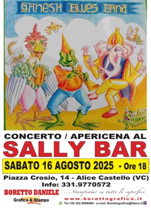 Esibizione della Ganesh Blues Band in programma sabato 16 agosto al Sally Bar di Alice Castello.